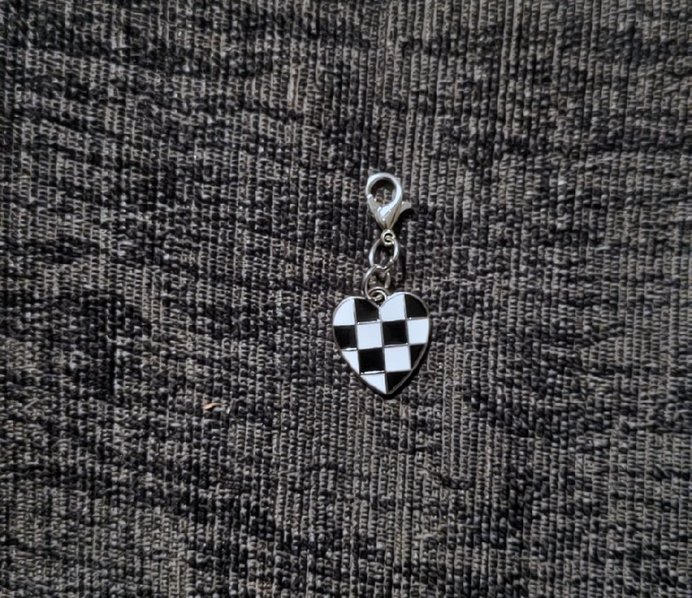 Checkered heart charm with lanyard pad for phones or any e-reader.