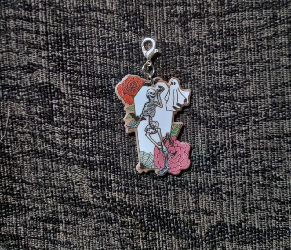 Spooky skeleton charm with lanyard pad for phones or any e-reader.